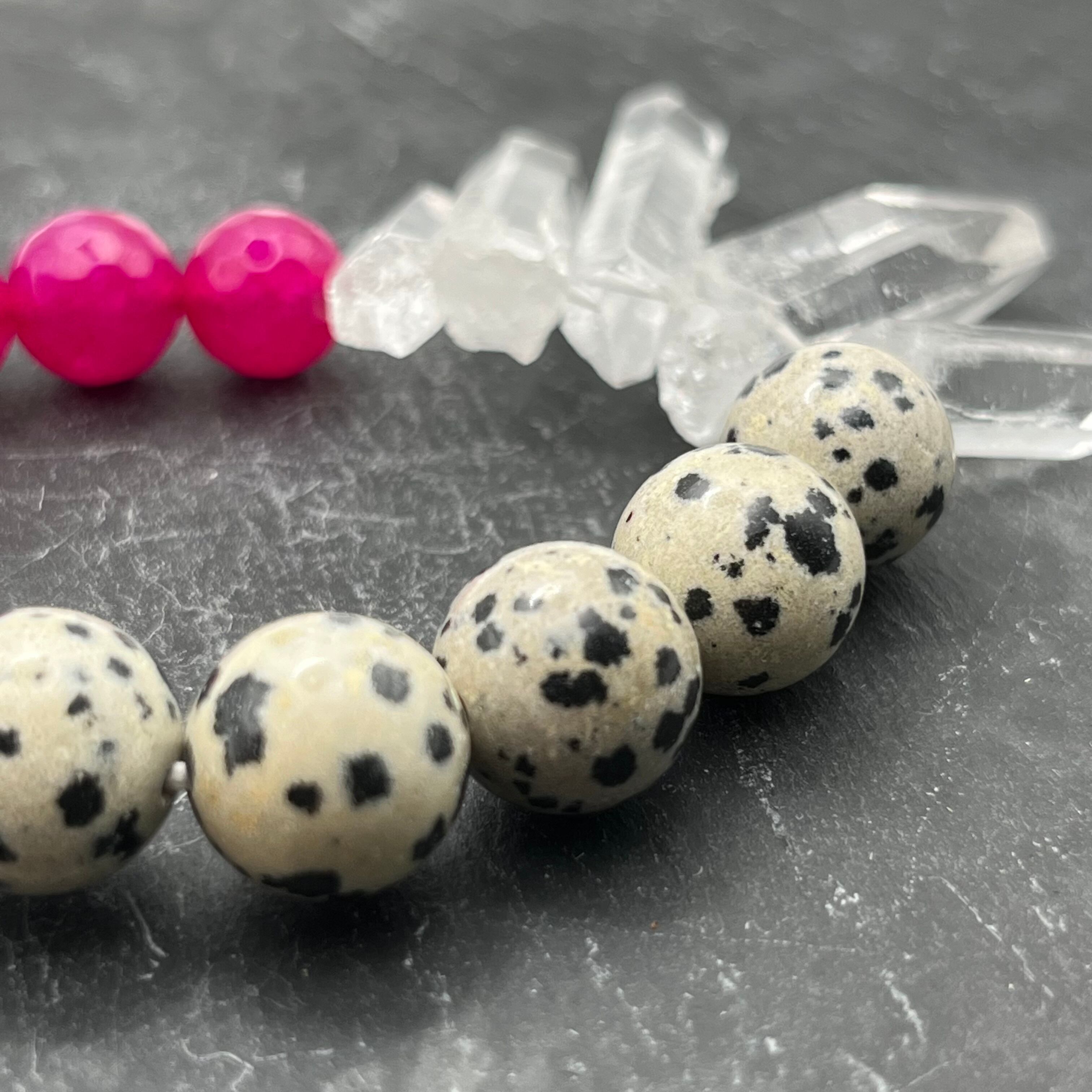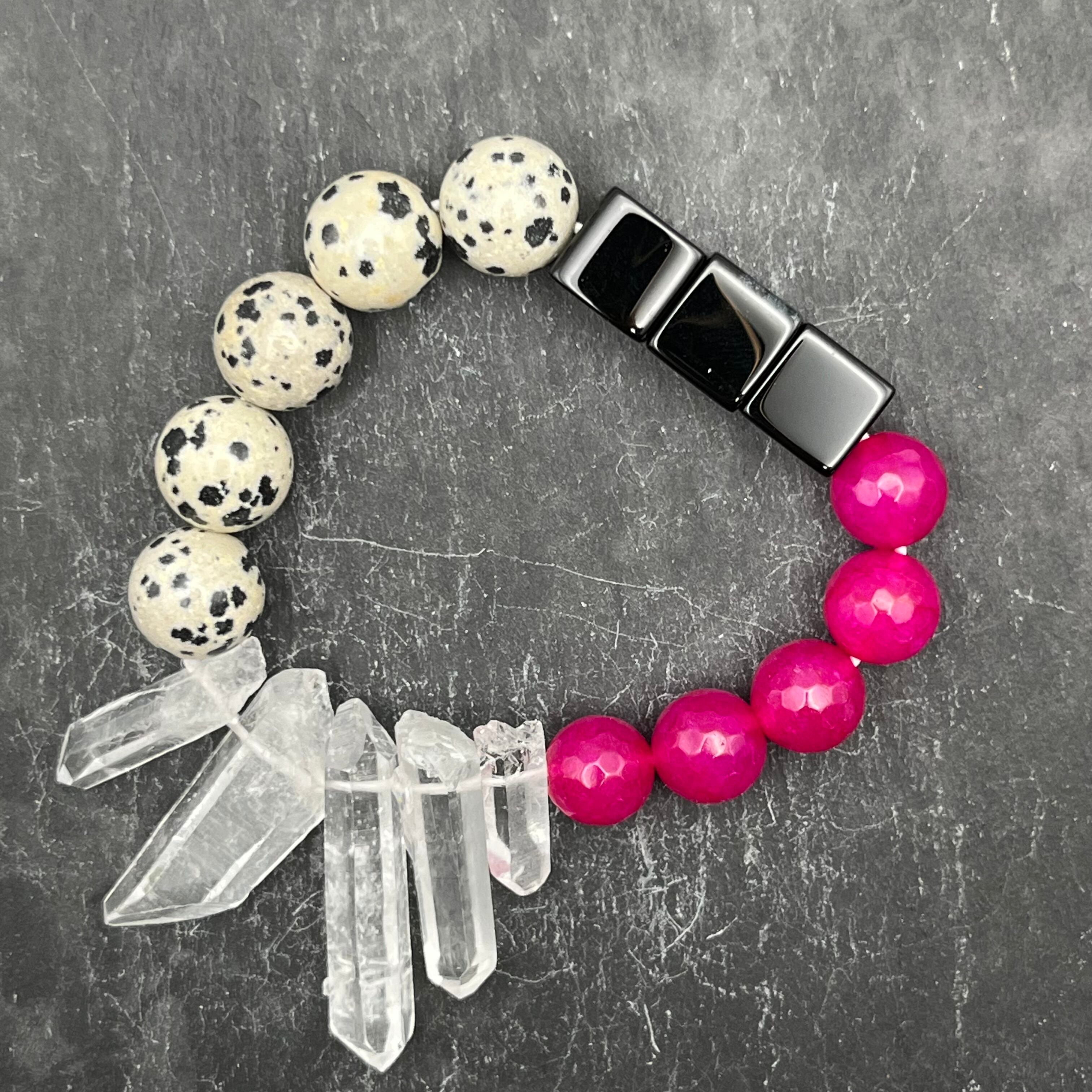 ダルメシアンジャスパーxピンクジェイドxクリスタル氷柱xスクエアオニキス